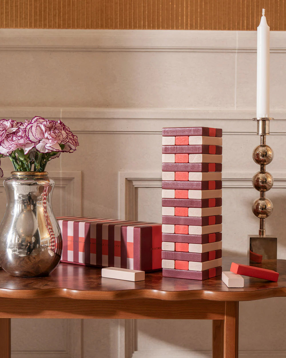 Discover our Tumbling Tower, a beloved and enjoyable game with a new colorful, and beautiful twist, looking equally impressive whether played or displayed. Made entirely of wood, the Tumbling Tower measures 28.5 x 8.5 x 8 cm.